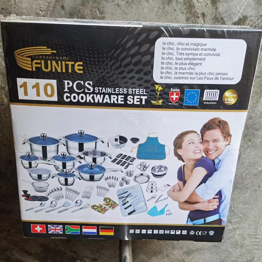 Ensemble accessoires de cuisine de 110pcs composé de marmites en acier inoxydable, ustensiles de cuisine ménagers, couverts,...