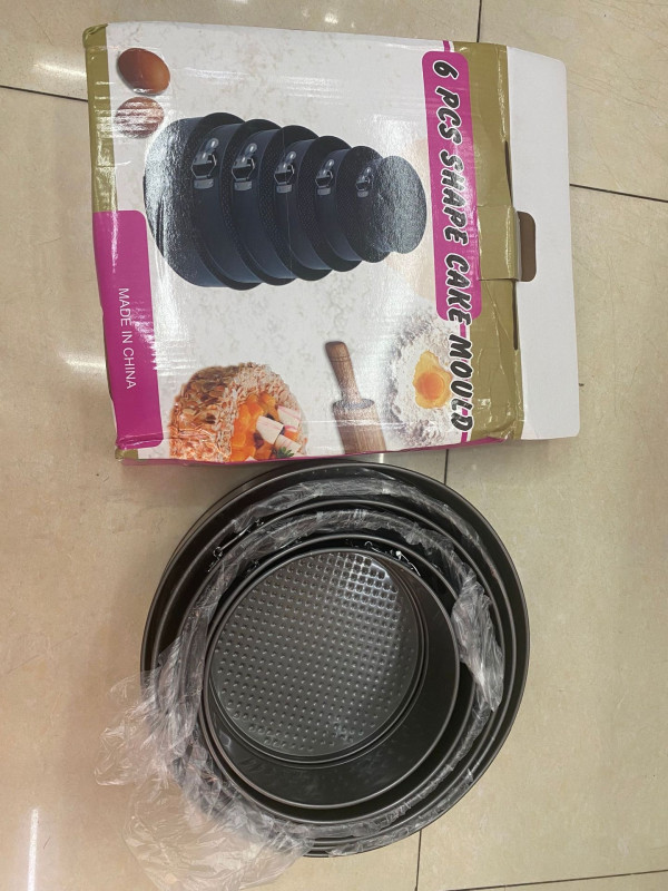 Ensemble de moules à gâteau 6 en 1, anti-adhesive de forme ronde, carrée, en coeur.
