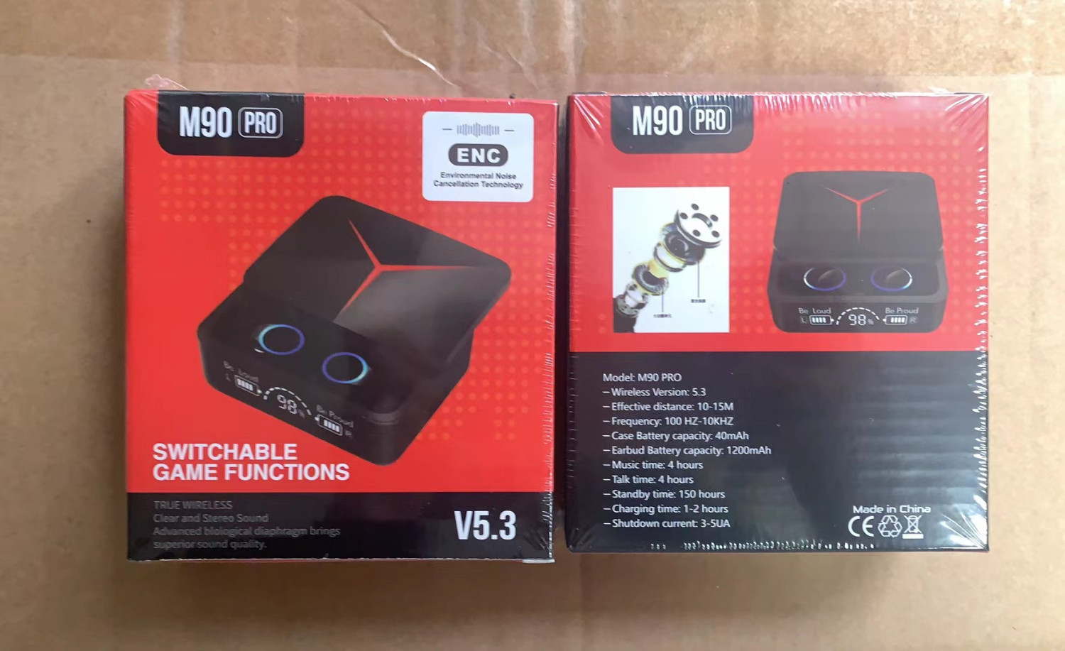 Ecouteur Bluetooth M90 sans fil haut de gamme 2024 avec fonctionnalités de jeu d'esport, couvercle coulissant, autonomie prolongée, compatible avec Huawei et Android.