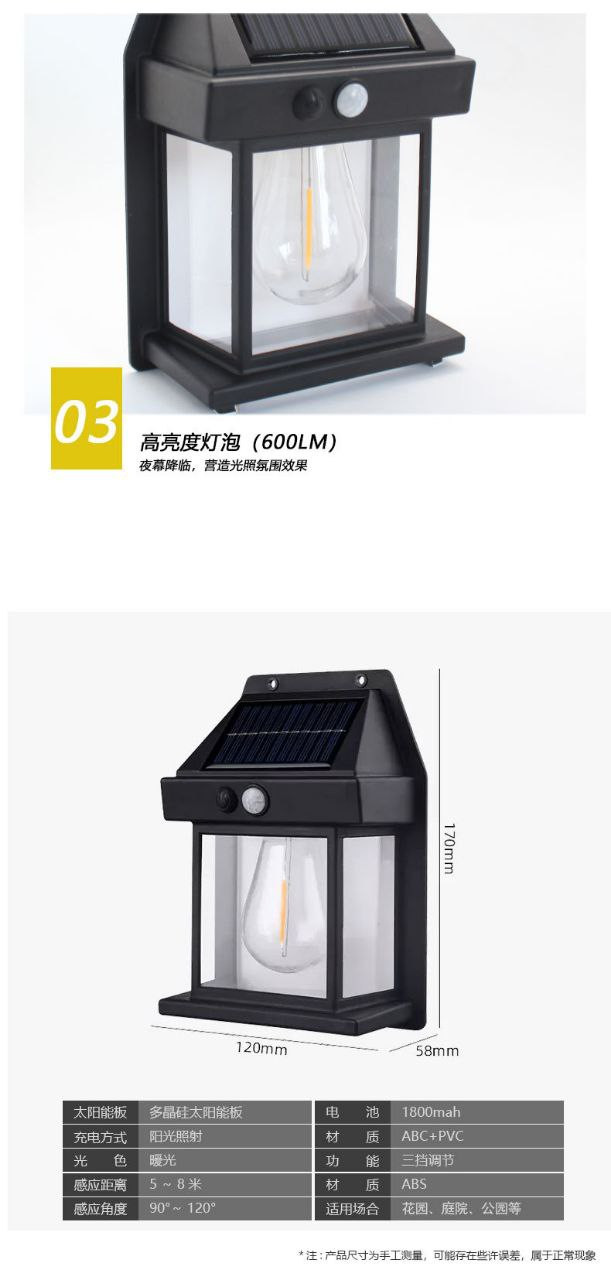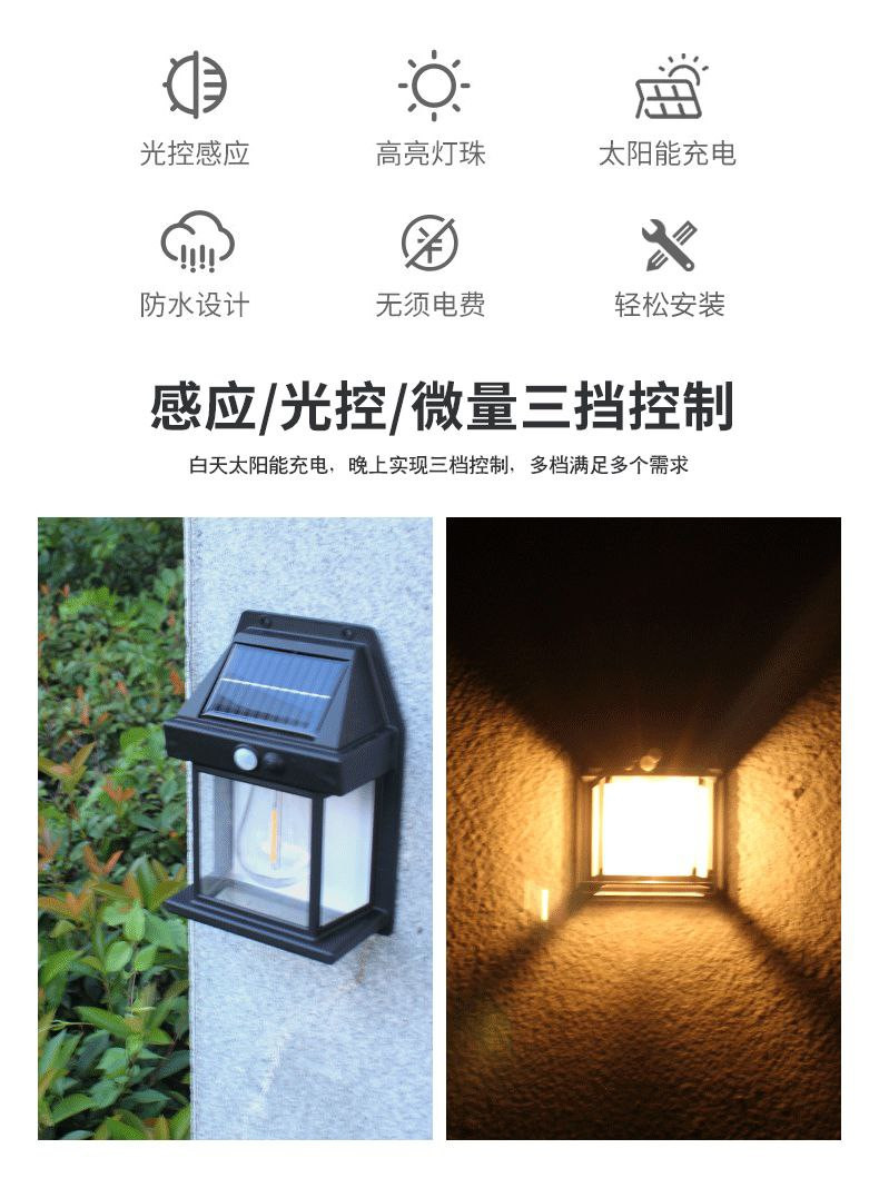 Ampoule solaire tungstène induction applique murale lampe de jardin jardin villa veilleuse éclairage