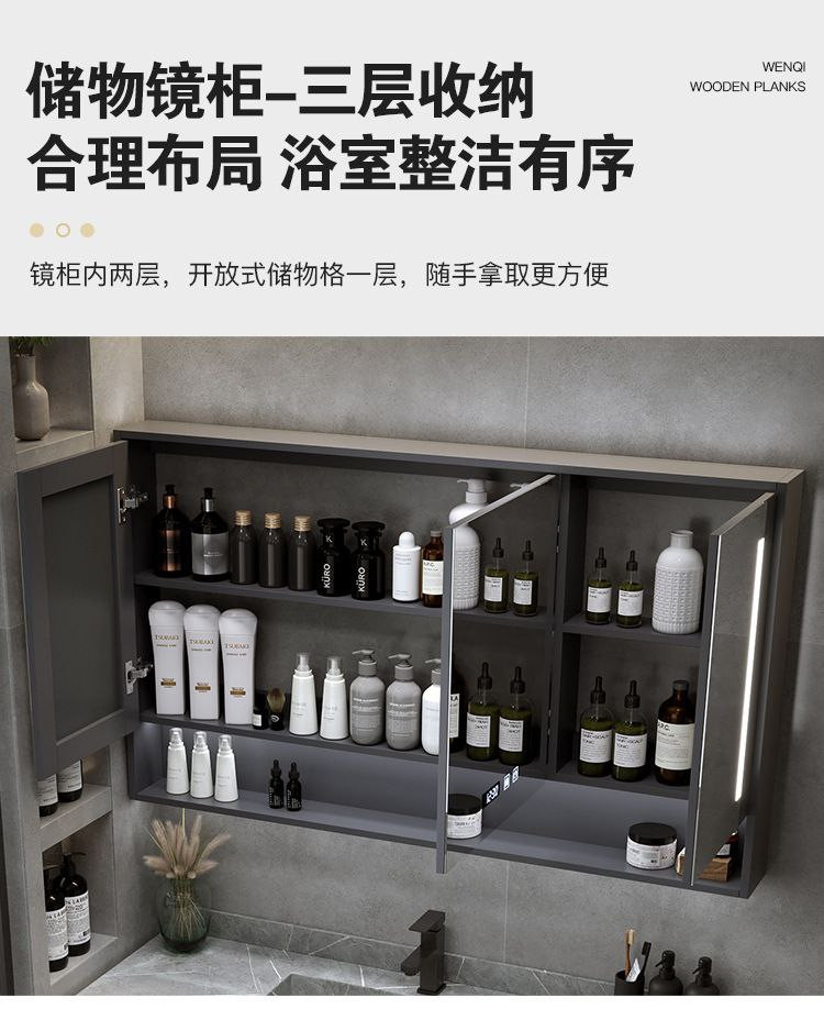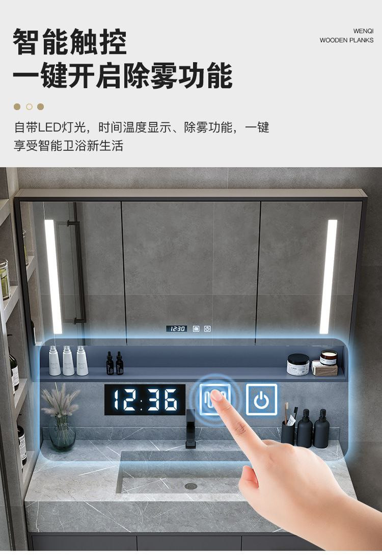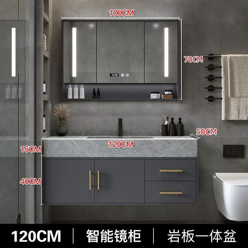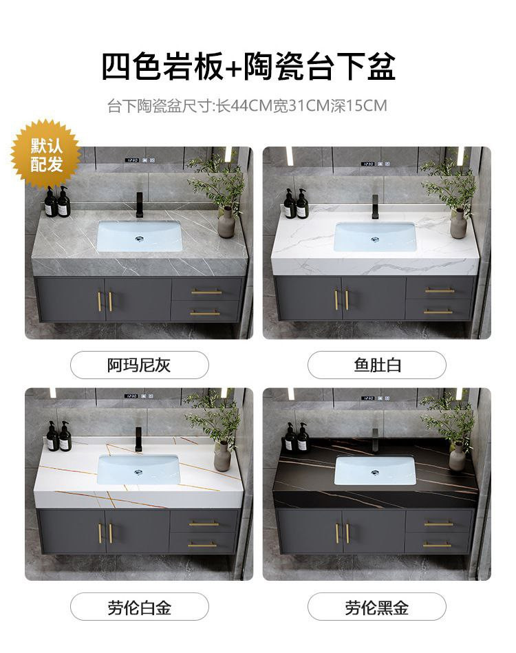 ComOne: Combinaison d'armoire de salle de bain intégrée en ardoise de luxe légère, lavabo simple, moderne et intelligent, lavabo de salle de bain